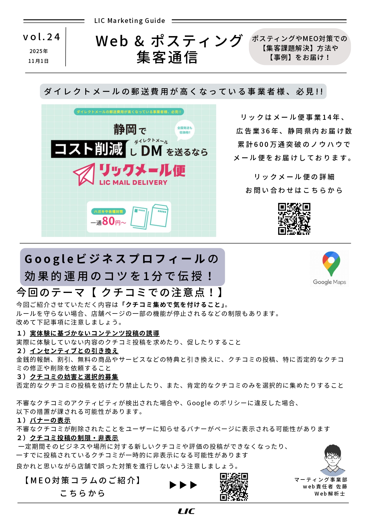 ◆ Googleマップ運用 & ポスティング ニュースレターvol.24◆